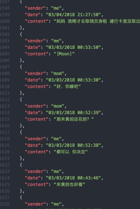 In order to create this piece, I collected all 8,450 text messages and 1,394 voice messages. I wrote python programs to organize the messages, including matching the voice messages with the dates. I chose to present the experience in VR because the environment offers a unique sense of isolation I desired. Floating on an empty chat window and having the messages float by, the user experiences the parallel between receiving information as a constantly scrolling feed as it passes through time, and receiving it as a static moment.